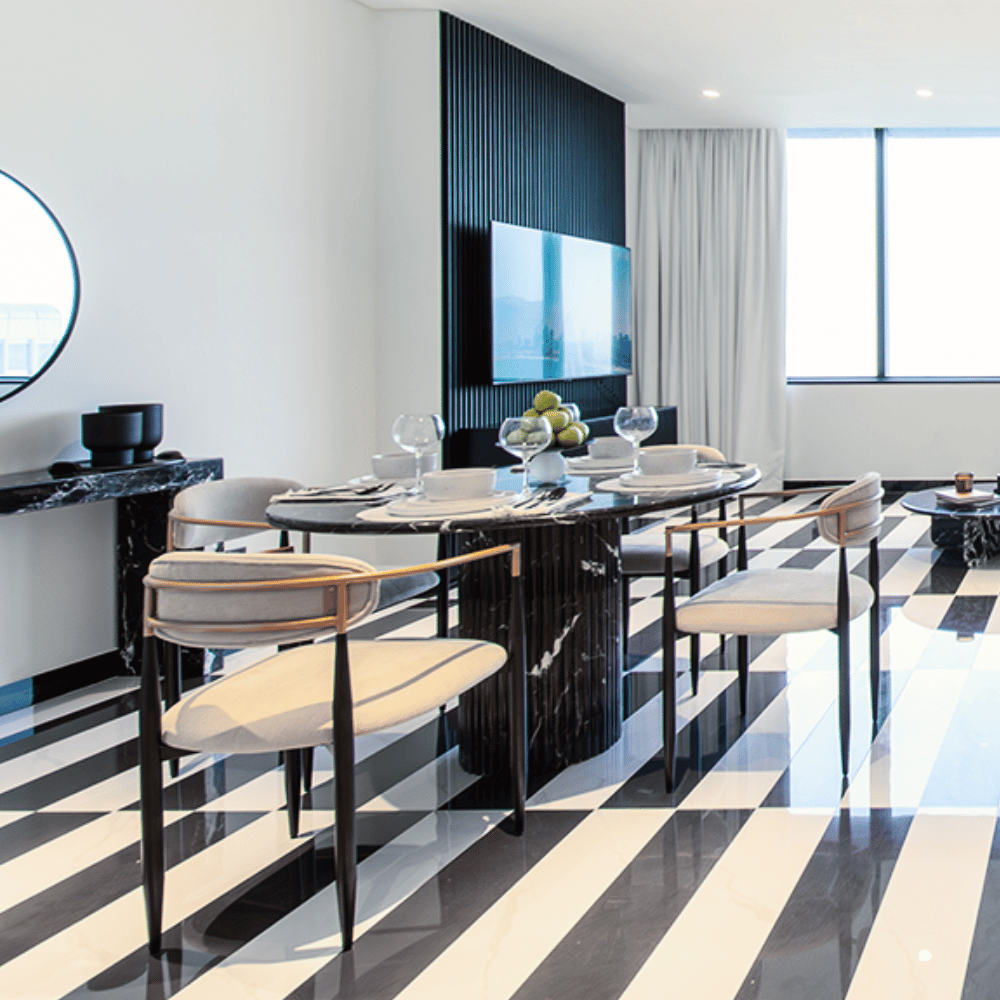 Black Tie Dining Table - Sophisticated Black Marquina Marble